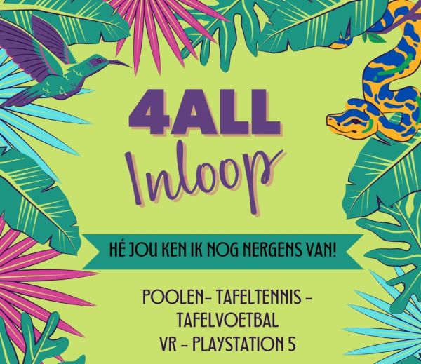 Kom gezellig naar de GRATIS inloop van 4ALL!! Potje poolen, tafeltennis, kletsen, PS5 en nog meer...