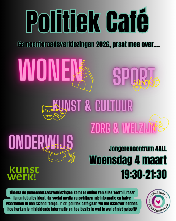 Kom op woensdag 4 maart naar het Politiek Café in jongerencentrum 4ALL :-)